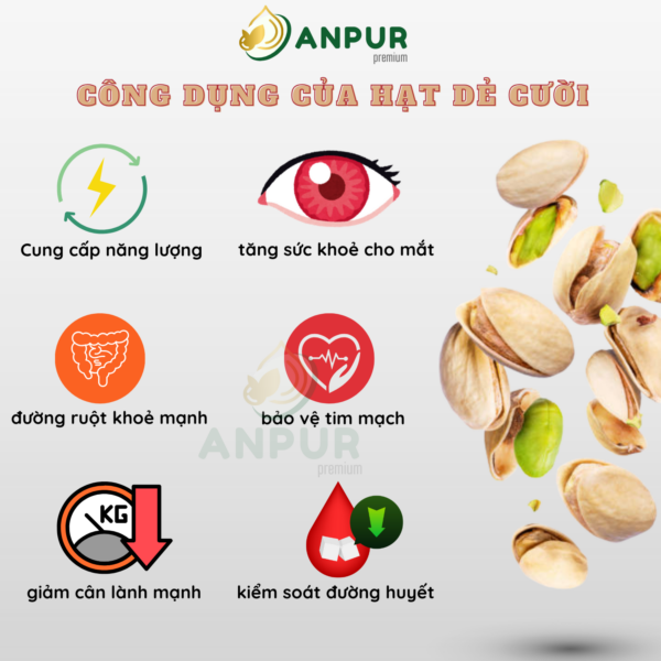 Hạt dẻ cười rang muối không tẩy trắng ANPUR, hàng chuẩn nhập khẩu Mỹ