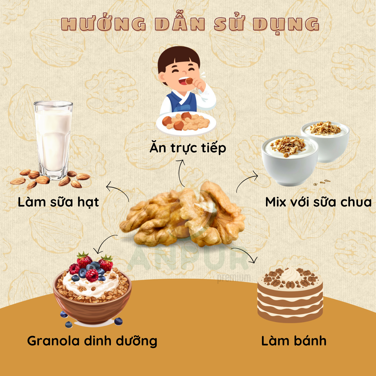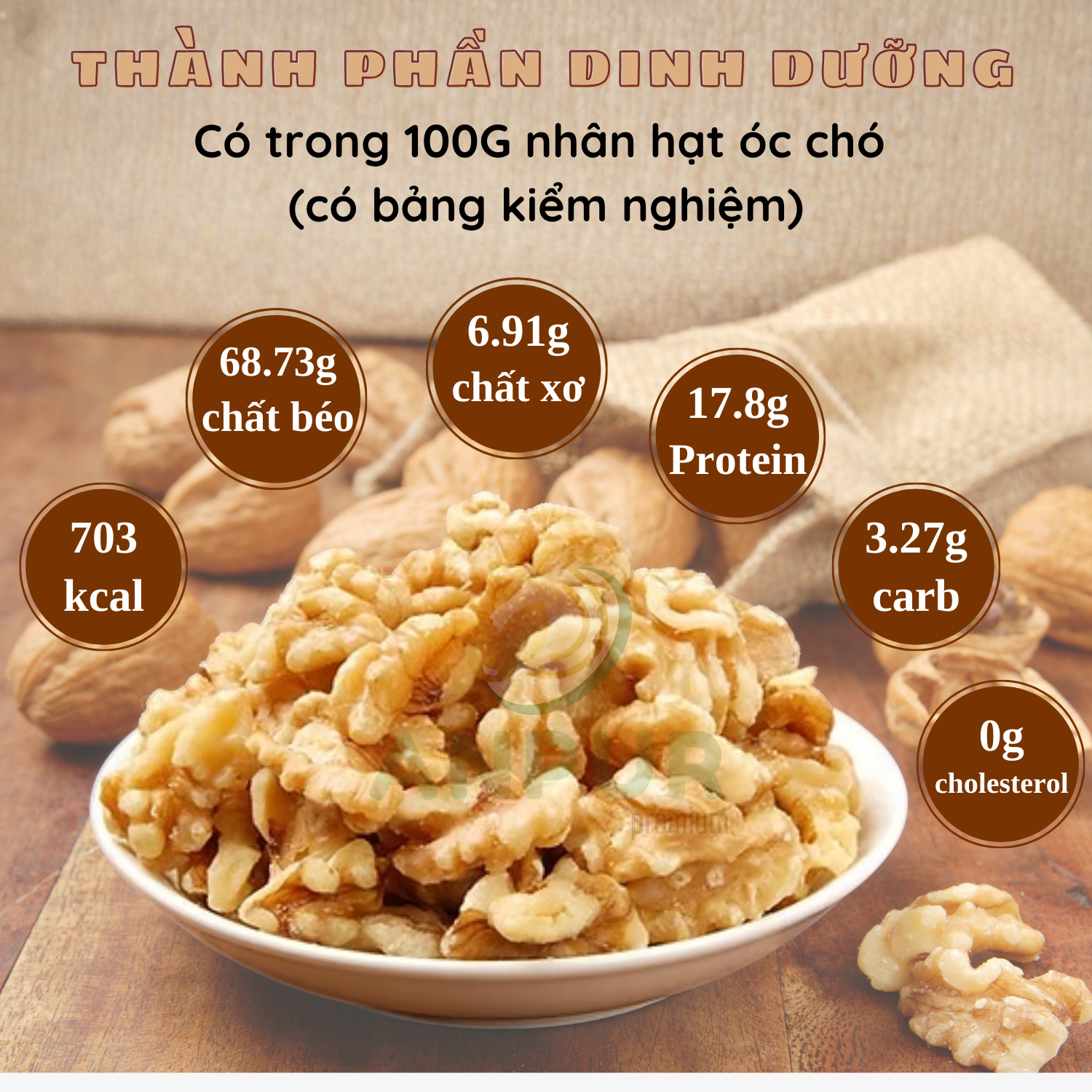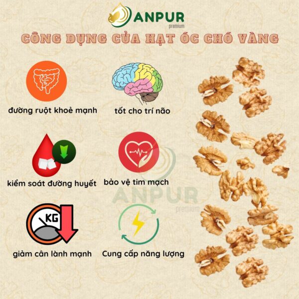 NHÂN ÓC CHÓ VÀNG MỸ SẤY MỘC